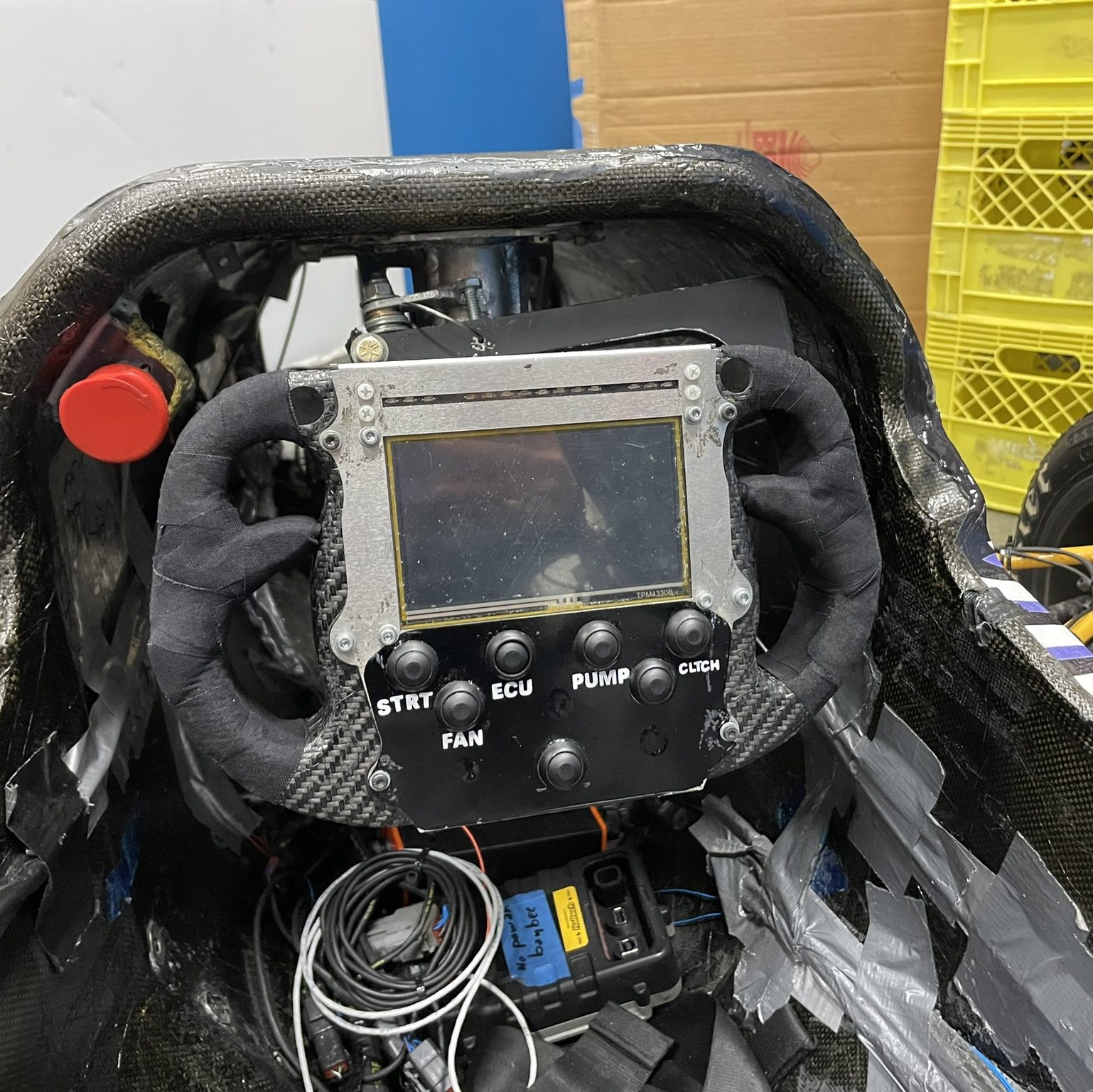 Designed and manufactured a custom carbon fiber steering wheel with an integrated dash display for Formula UBC Racing’s 2025 race car. Created ergonomics upgrades to the handles and paddle shift mechanisms. Waterproofed the enclosure to house dash display electronics within the wheel.