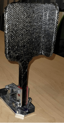 I knew that I wanted to improve the stability of the connection between the pedal arm and face. Last year’s pedal was made with a separate carbon fiber arm and face that were epoxied together. There was a failure where the face and arm separated and had to be put back together with a wet layup. To minimize the chance of that failure recurring, I explored designs that had the pedal arm and face in the layup together. I also looked at tapered arm geometries to help reduce stress concentrations in the carbon fiber.