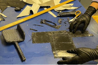 A prototype composite throttle pedal was designed in CAD based on the concepts I explored. The core was a CNC cut rohacell foam arm piece, pedal face, and flag for a total of three pieces. 3 layers of twill weave carbon fiber were done in a 0/90-degree layup schedule around the foam core, and it was oven cured with vacuum bagging for debulking. Beam bending calculations were done in Excel to come up with a starting point of three layers of carbon on all faces and the fiber orientation was aligned with the peak stresses to give the most mechanical benefits. An aluminum bracket was made by bending sheet metal and belt sanding one end to round the edges and was epoxied onto the pedal arm after curing for the prototype.